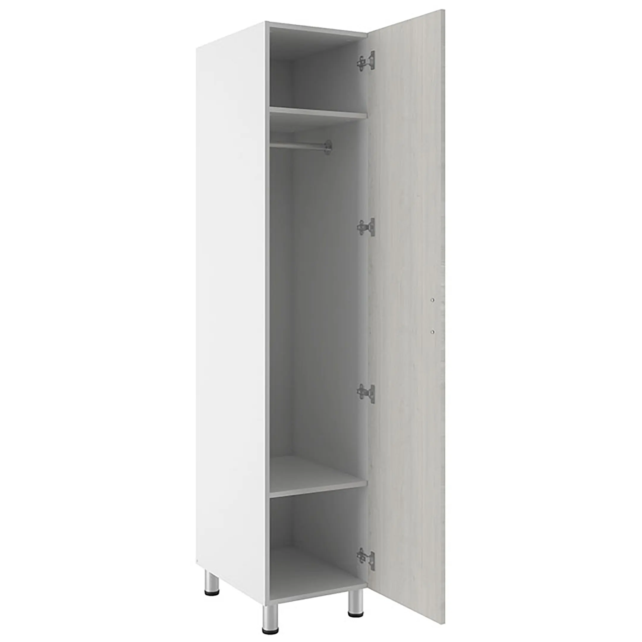 - комплектуется несъемными полками и хромированной перекладиной для вешалок;