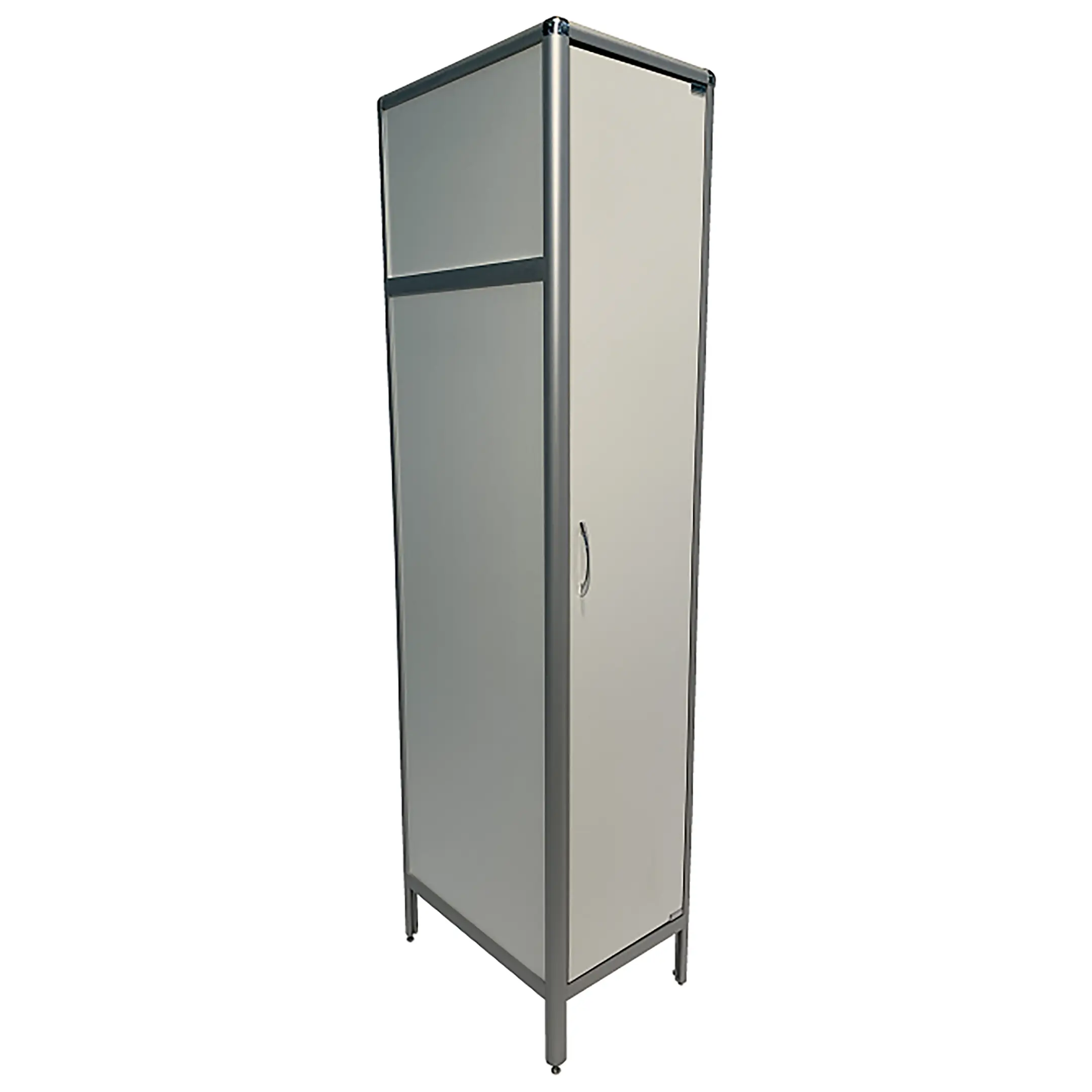 • Оснащен штангой, полкой для головных уборов, дверцей и регулируемыми по высоте ножками.