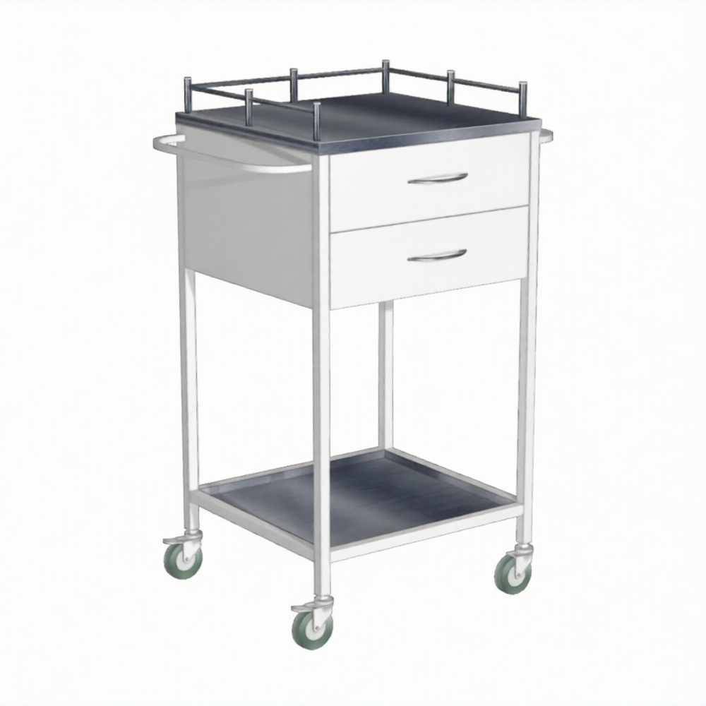 Стол инструментальный СиП-2 (каркас белый) применяется для размещения на нем инструмента, материалов, медикаментов, в том числе применяемых в стоматологической практике, в кабинетах врачей, перевязочных, операционных, на постах медицинских сестер в отделениях больниц, в клиниках, поликлиниках и других медицинских учреждениях.