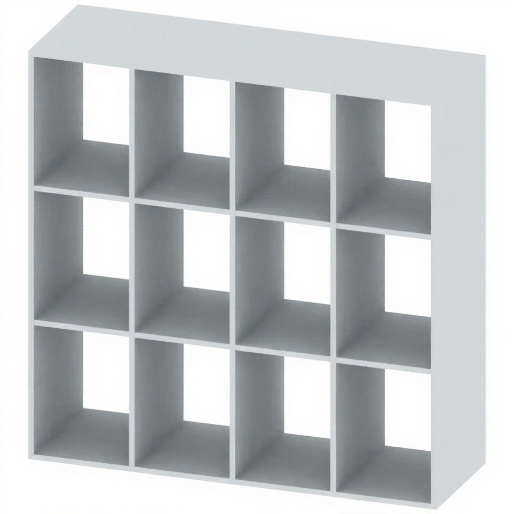 - Компактность и вместительность — вертикальная конструкция 3х4 ячейки эффективно использует высоту, предоставляя достаточно места для хранения, не занимая при этом много полезной площади на полу.