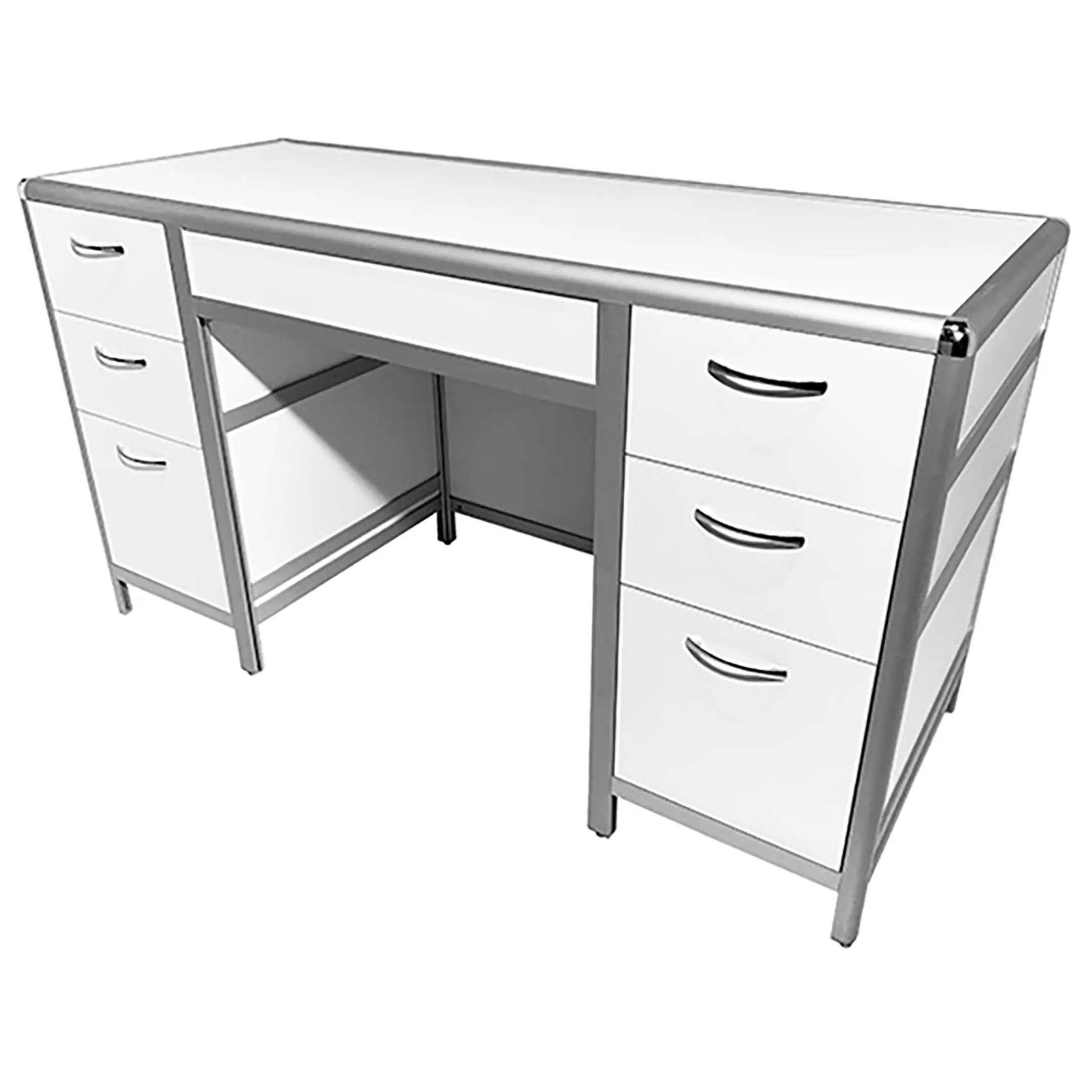 Стол лабораторный MED 10.007al (белый) представляет собой идеальное решение для организации продуктивного и удобного рабочего места сотрудников в лабораториях и медицинских учреждениях. Модель оснащена двумя боковыми тумбами, каждая с тремя выдвижными ящиками. Каркас выполнен из алюминиевого профиля, столешница из ЛДСП толщиной 16 мм.