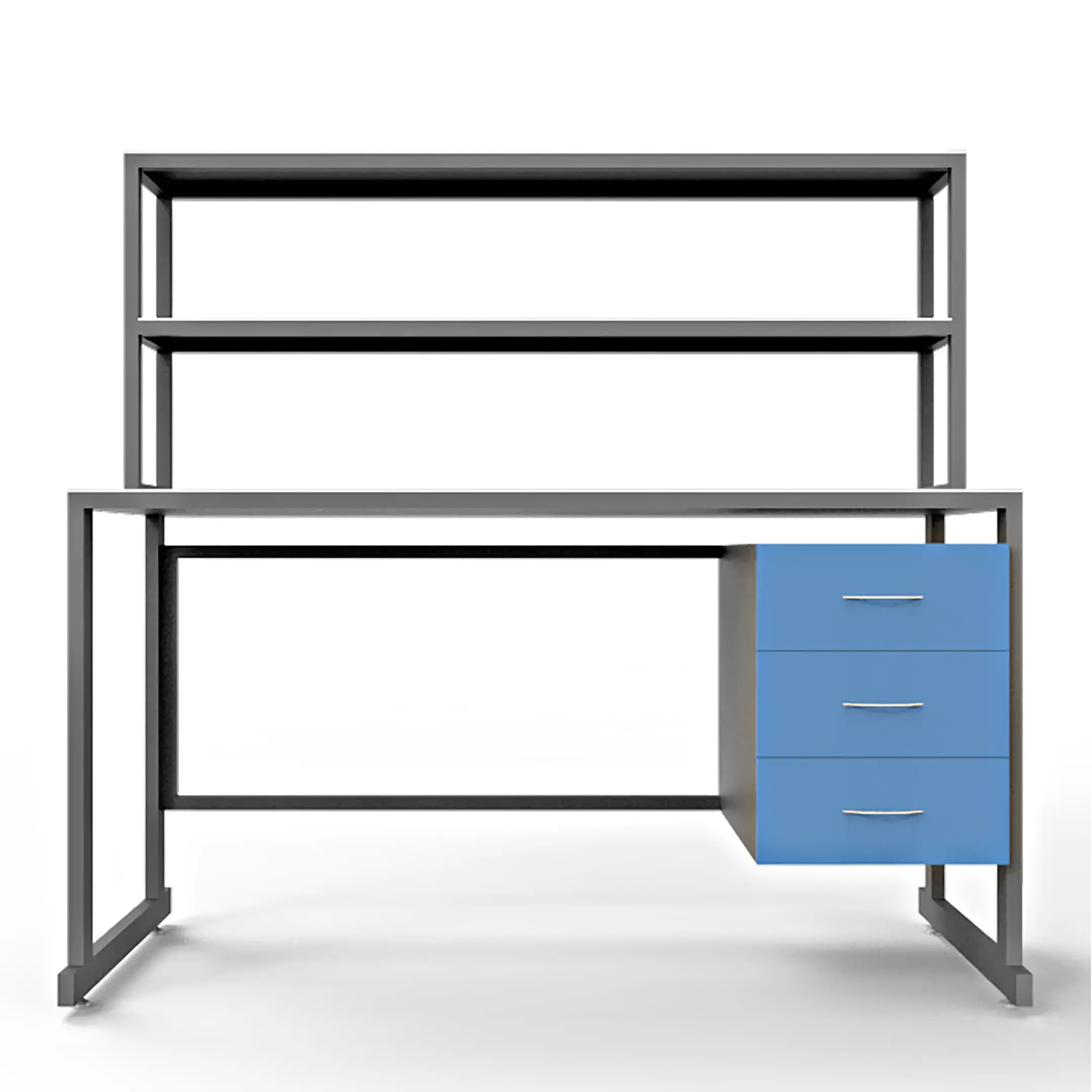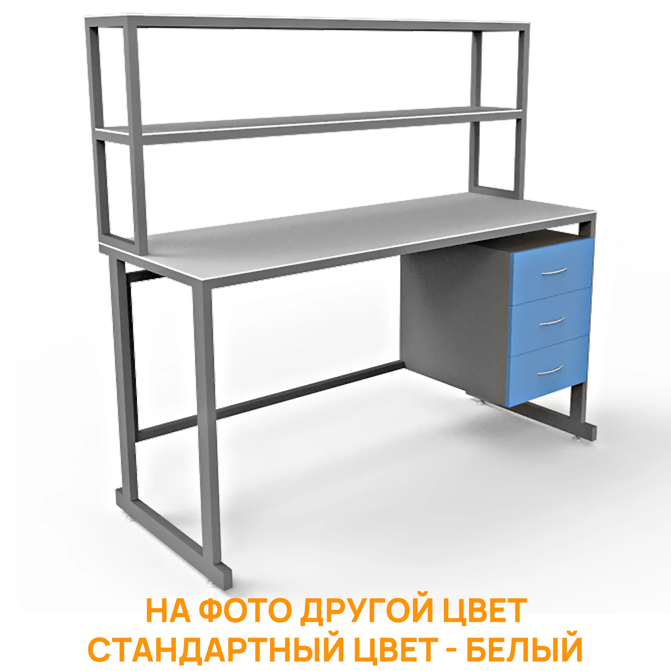 - Функциональная надстройка — две полки для дополнительного размещения оборудования, общая высота стола с надстройкой 1600 мм.