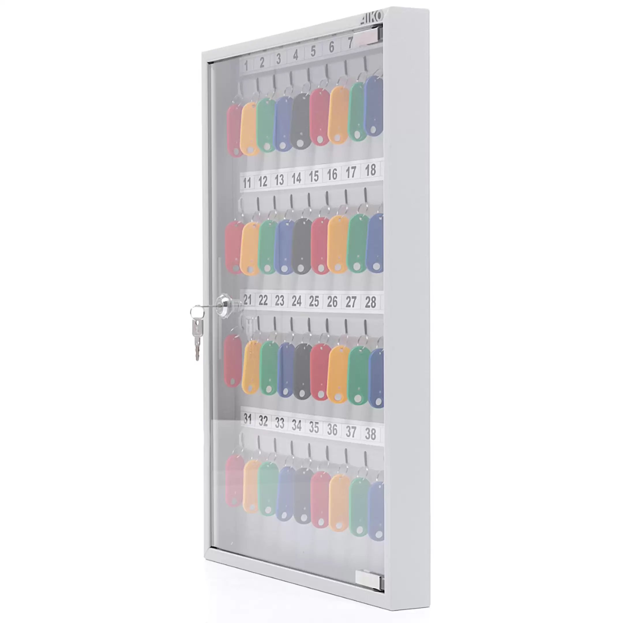 - Оптимальная вместимость для рабочих мест и точек доступа — система рассчитана на 40 ключей, что идеально подходит для организации хранения на стойке администратора, в диспетчерской, на посту охраны или в отделе, где требуется систематизировать и контролировать значительный набор ключей.