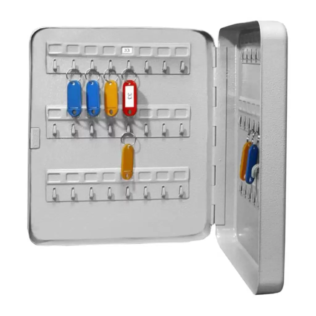 - Надежная защита от несанкционированного доступа — прочный стальной корпус с общим замком надежно защищает все ключи от кражи, подмены или случайного повреждения. Это базовый, но эффективный уровень безопасности, необходимый для большинства коммерческих и административных объектов.