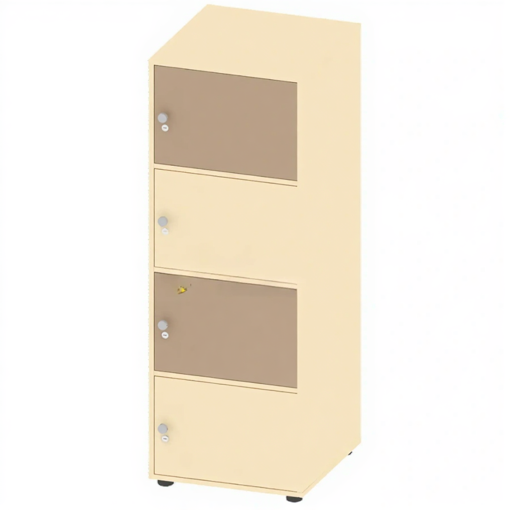 Шкаф 4 секции на замке ГР-ШП-12, Крем — это функциональное решение для хранения одежды и личных вещей в образовательных, спортивных, офисных и других учреждениях. Модель имеет 4 индивидуальные секции, каждая из которых оснащена замком и ручкой на дверце. Шкаф изготовлен из качественной ЛДСП толщиной 16 мм в цвете Крем.