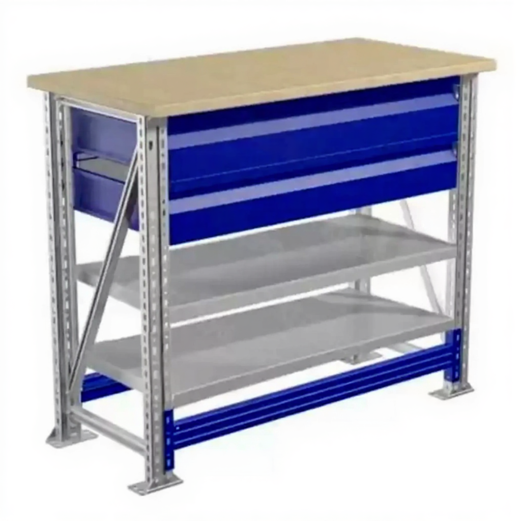 - Компактные размеры — столешница 1000х500 мм позволяет разместить верстак даже в небольших помещениях.