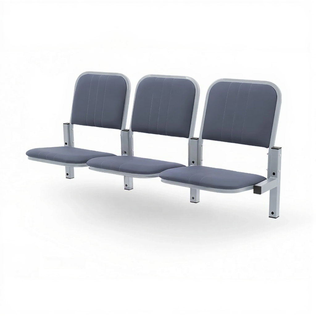 Материал каркаса — трубы сечением 40×40 мм и 20×20 мм, покрытые антикоррозийным полимерно-порошковым составом, обеспечивающим долговременную эксплуатацию. Сиденья и спинки обшиты искусственной кожей, удобной в уходе и устойчивой к повседневному износу. Подпорки регулируются по высоте с помощью подпятников, что позволяет равномерно распределять вес и обеспечивать оптимальное положение относительно пола.