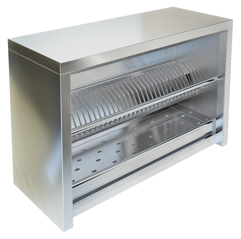Полку закрепляют на стене с помощью кронштейнов над рабочим столом или моечной ванной. Полка сушильная изготовлена из нержавеющей стали, задняя стенка — сталь оцинкованная. В условиях постоянного контакта с водой сушилка не окисляется и легко отмывается. Закрытая конструкция полки не позволяет пыли и другим загрязняющим частицам оседать на чистой посуде.