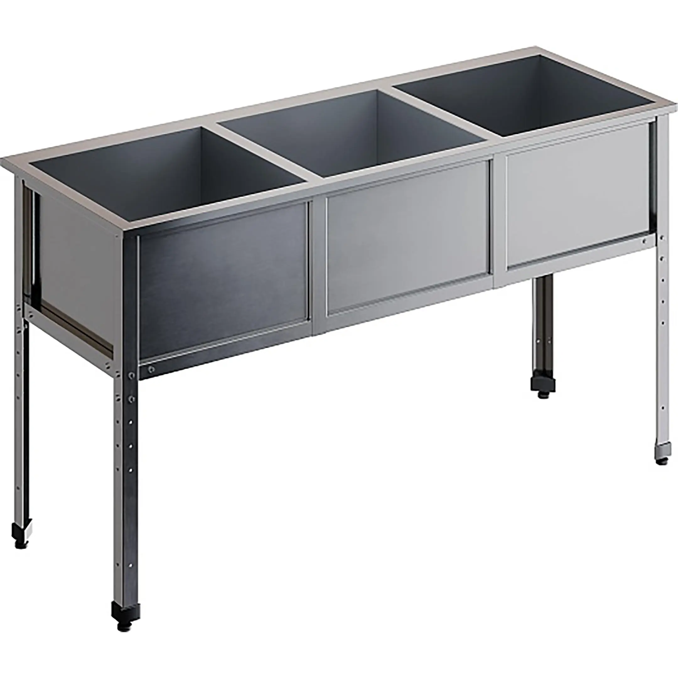 Ванна моечная трехсекционная ВМС-3/4-ЭК разработана для применения в моечных отделениях предприятий общепита и торговли различного формата, пищевых производств и пищеблоков для мытья посуды, кухонного инвентаря, продуктов питания и рук персонала.