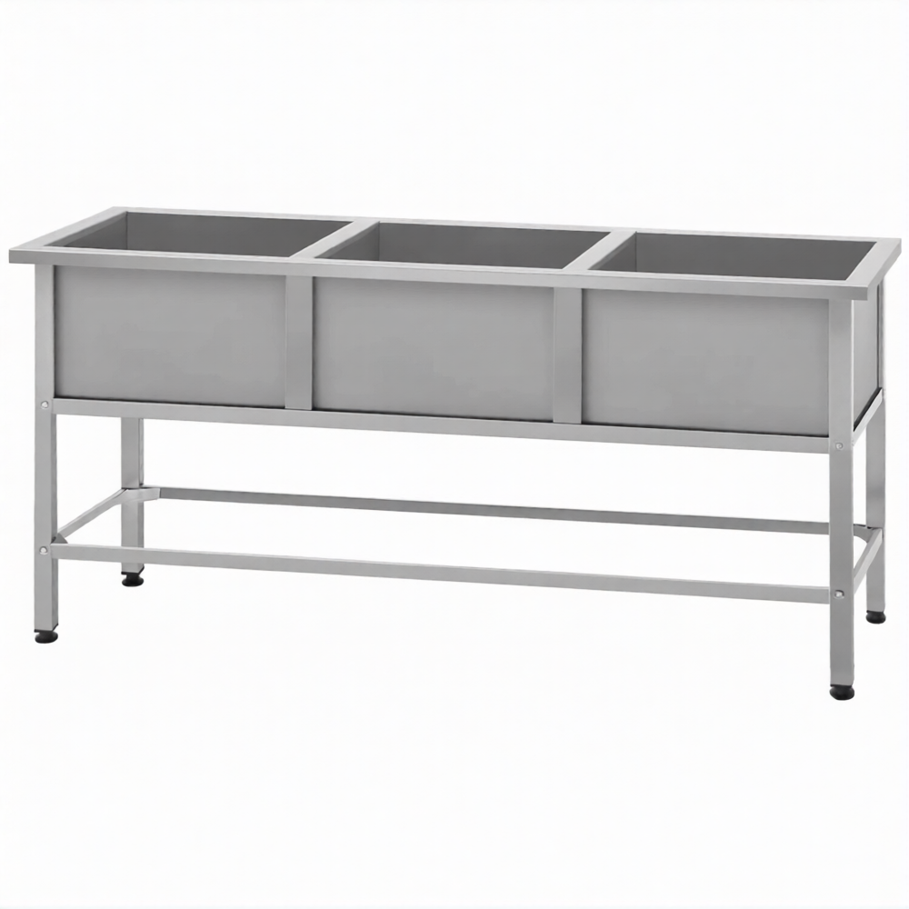 Ванна моечная ВМСн 530/3  3 м/о 430х430х300 (полка 3 отв. борт; ножка проф. тр. 40х40)
