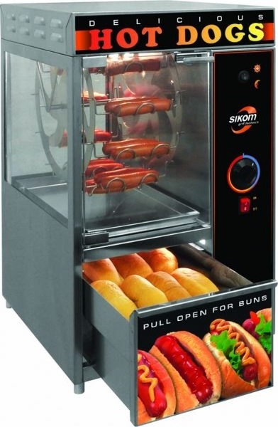Гриль для хот-догов карусельный МК-1.22 СИКОМ — это профессиональное оборудование для предприятий общественного питания, предназначенное для приготовления хот-догов в заведениях быстрого питания, супермаркетах и в точках уличной торговли.