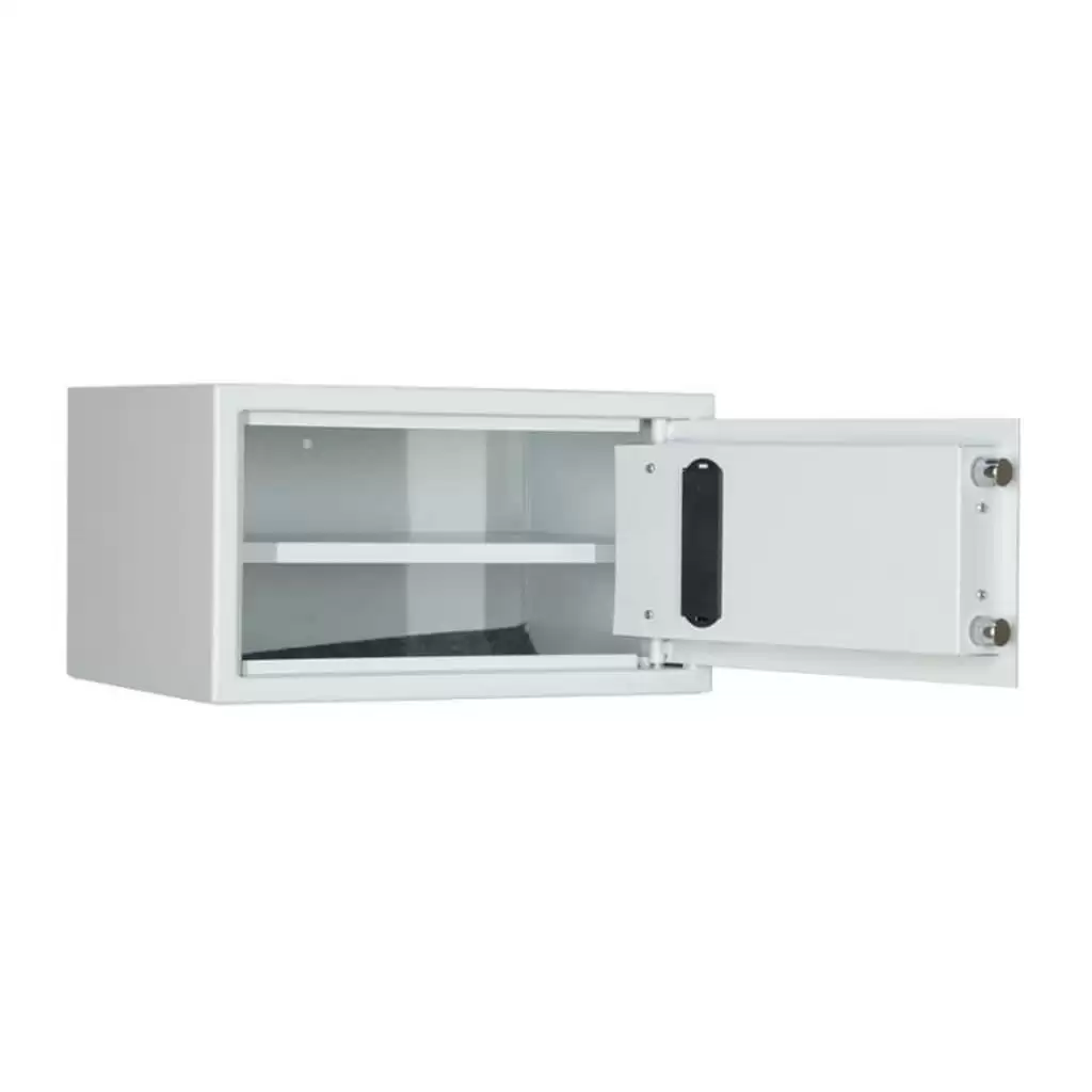 - Электронная система защиты — шкаф оборудован электронным замком, что обеспечивает надежную защиту хранимых ценностей. Управление доступом с помощью кода исключает риск утери ключей и позволяет контролировать доступ к содержимому.