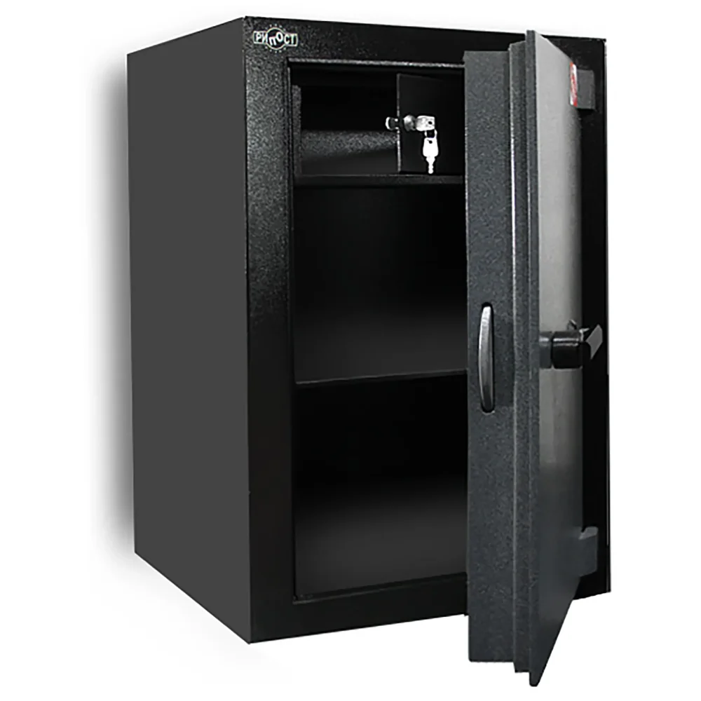 корпус сейфа имеет усиленный двухслойный сварной стальной каркас, выполненный из листовой стали и заполненный специальным бетоном;