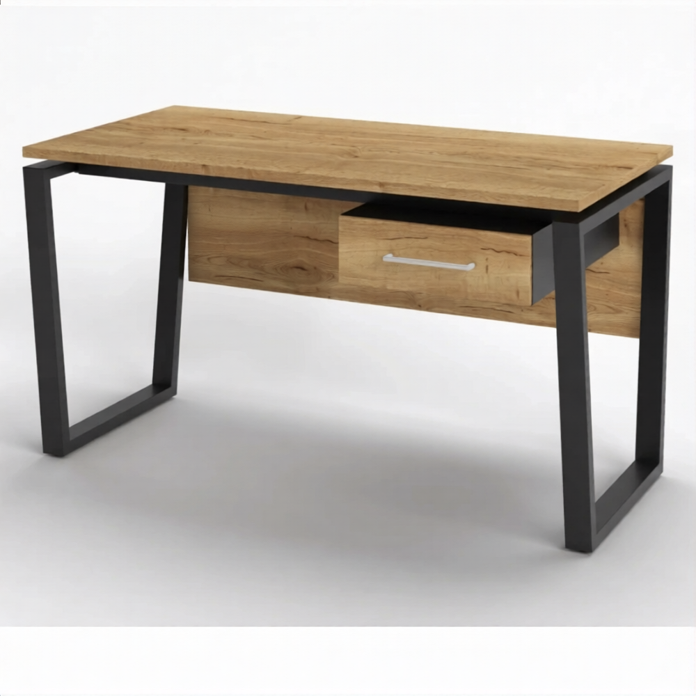 Стол рабочий 1 ящик СрТ-21 (тип 3) (1600х700х750) (столешница ЛДСП дуб вотан, каркас черный)