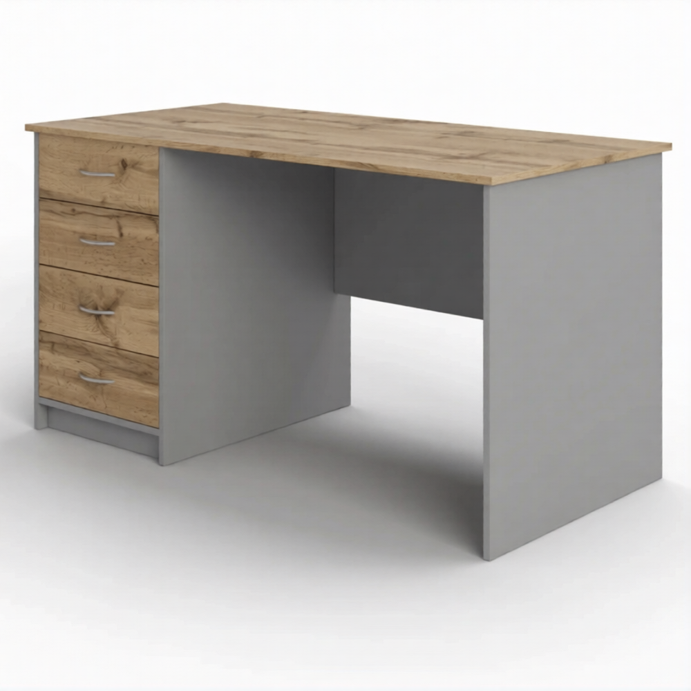 Стол рабочий СрТ-15 (1600х700х750) с тумбой (корпус ЛДСП серый, столешница ЛДСП дуб вотан)