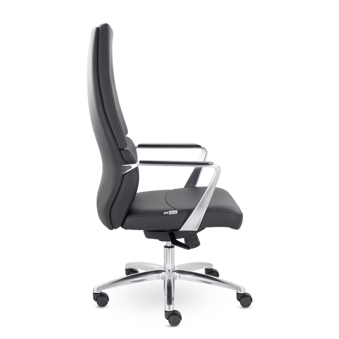 Кресло EPIK A‑130‑G (черный) — стильное и комфортное кресло руководителя с мягкой обивкой из экокожи и устойчивой конструкцией, подходящее для офисных кабинетов и домашних рабочих зон. Модель сочетает продуманный дизайн, поддержку поясницы и удобные функциональные элементы для комфортной работы в течение дня.