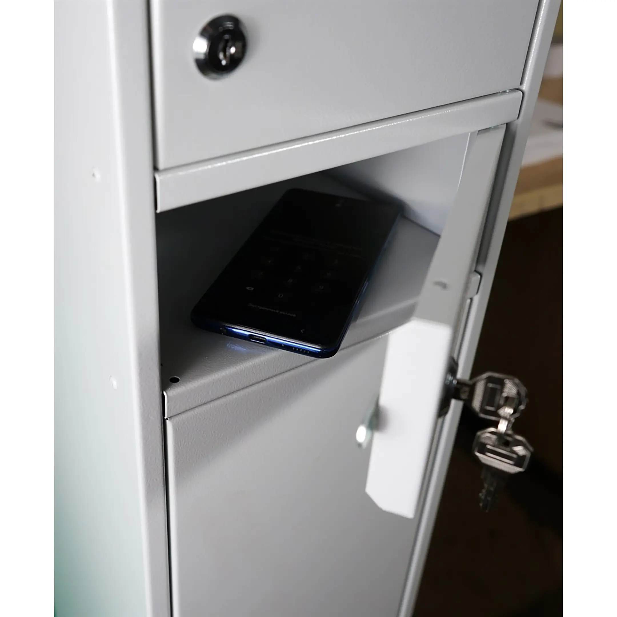 - Большая вместимость и четкая организация — шкаф предоставляет 32 индивидуальные запирающиеся ячейки, что позволяет эффективно хранить мобильные телефоны целого класса, рабочей смены или группы посетителей. Это упорядочивает процесс, исключает хаос и гарантирует, что у каждого устройства есть свое зафиксированное место.