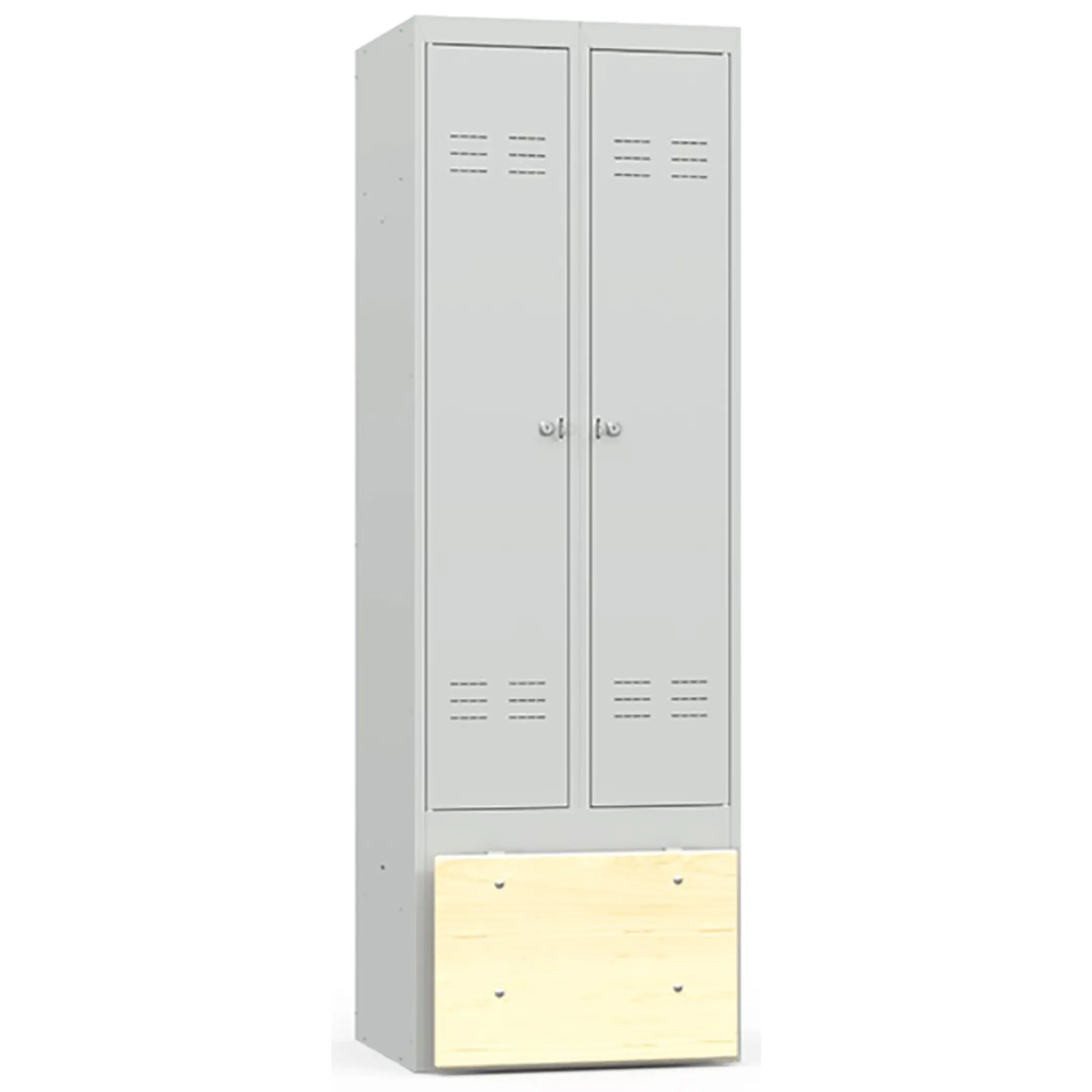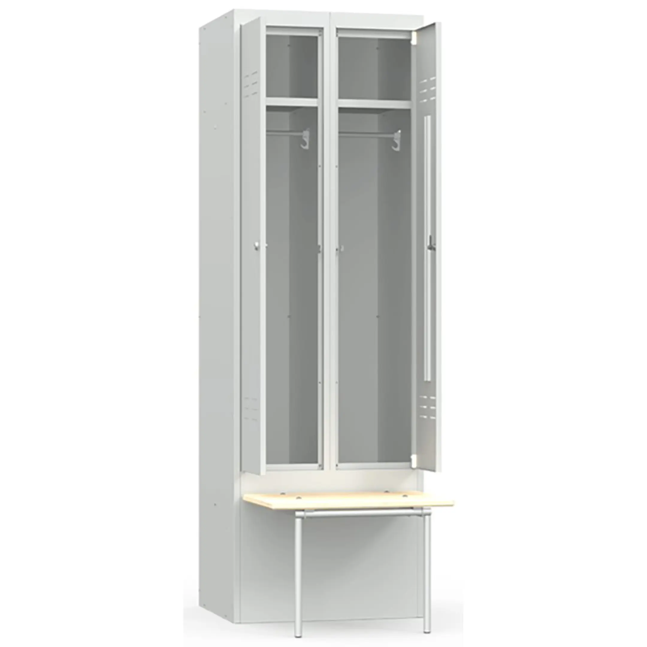 • каждая секция комплектуется полкой для головных уборов, металлической перекладиной для вешалок, проушиной для навесных замков и двумя крючками для одежды;