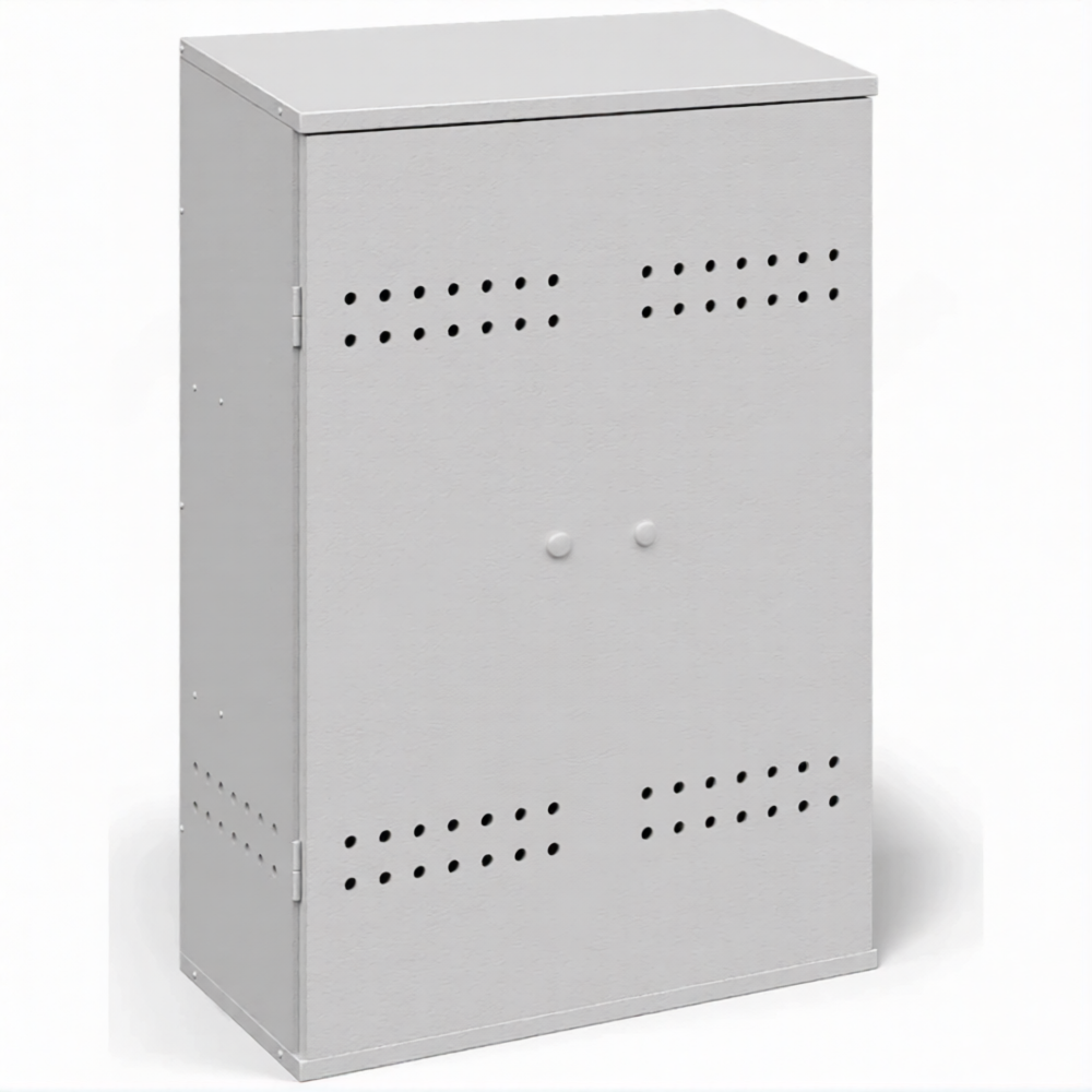 Шкаф для пропановых баллонов разборный ШПБР-02-1,2 мм — это универсальное и практичное решение для безопасного хранения двух стандартных пропановых баллонов объемом до 50 литров каждый, отличающееся удобством транспортировки и сборки. Модель представляет собой металлический шкаф, где аббревиатура «ШПБР» расшифровывается как «Шкаф для Пропановых Баллонов Разборный», индекс «02» указывает на вместимость для двух баллонов, а «1,2 мм» обозначает толщину используемой стали. Конструкция специально разработана для простой сборки на месте эксплуатации без необходимости сварки, что обеспечивает удобство доставки в труднодоступные места и мобильность при перепланировке объекта.