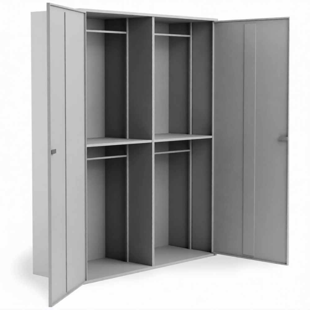 • Шкаф для хранения специальных средств и бронезащиты имеет 2 отделения с полкой и двумя перекладинами в каждом.